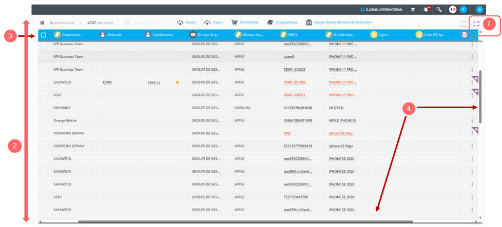 2. If more than 10 elements are displayed (20, 50 or 100), a table anchor feature has been added to center the latter and always focus on the content you wish to view.