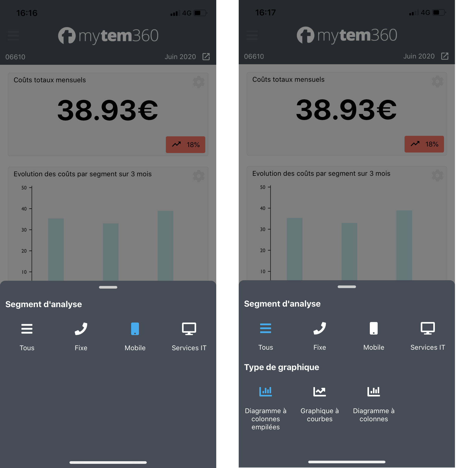 The icon lets you customize the segment (Fixe, Mobile, Services IT) or even the chart type (diagram, bar chart, line chart):