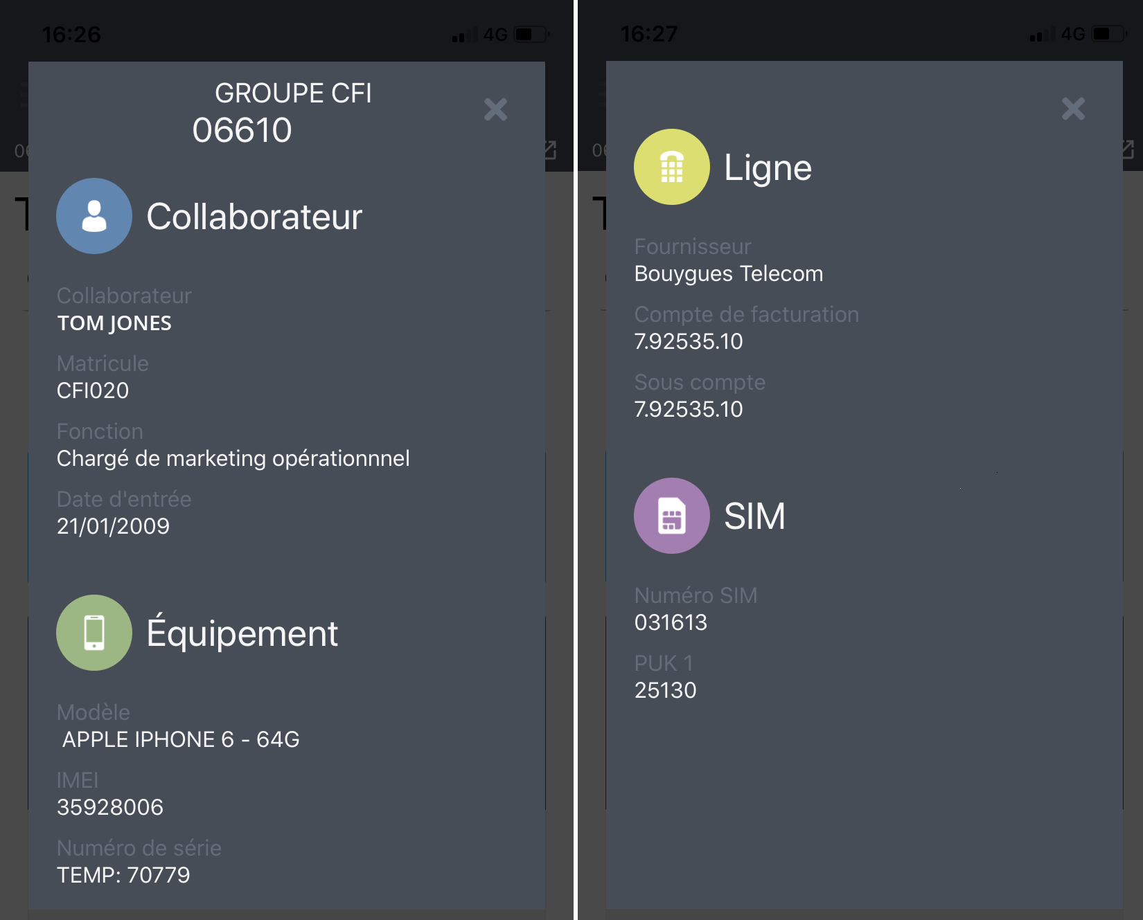 - Les détails des équipements qui lui sont alloués, Details of the device(s) assigned to her