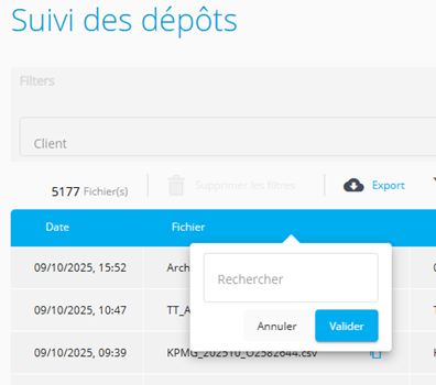 donne la possibilité à l’utilisateur d’exporter (au format CSV) une liste de fichiers déposés.