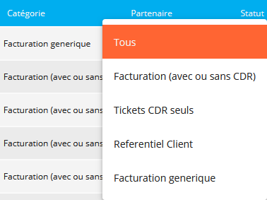 En cliquant sur l’icône des colonnes Type Import et Statut, une liste de choix filtrable apparait