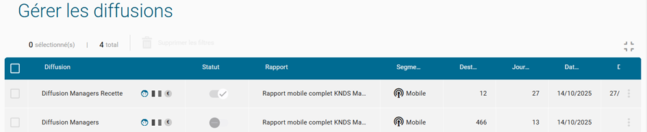 - Spécificité en dur dans la diffusion : Liste des lignes du manager.