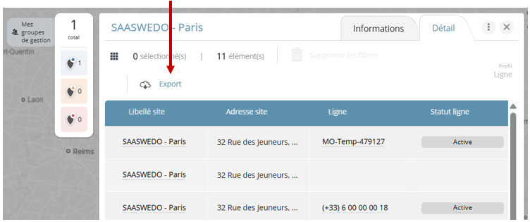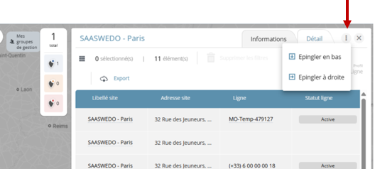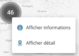 Lorsque vous vous trouvez sur la carte, faites un clic droit sur le marqueur d'un site ou sur un groupement, puis cliquez sur "Afficher détail".