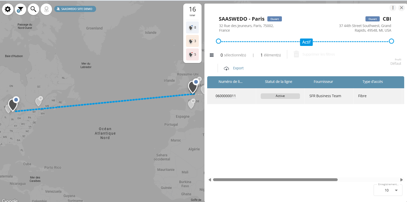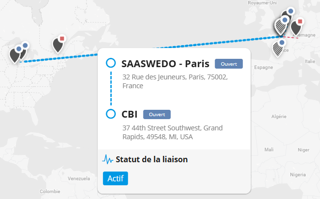 | Liaison dont le statut est actif : 100% des lignes de la liaison sont actives. | |