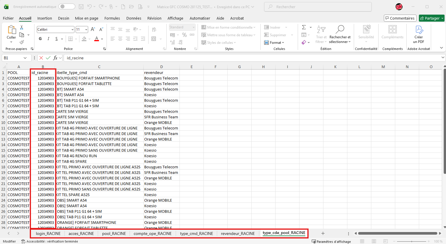 Le nommage de chaque onglet doit être respecté sans quoi ils ne seront pas traités.