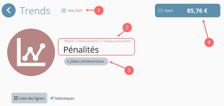 - Ligne : Ligne sur laquelle est facturé le coût