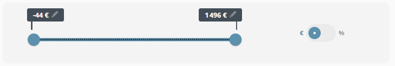 Un clic sur le toggle, vous permet de filtrer, non plus par rapport à une plage de montant, mais par rapport à une plage de pourcentage du montant total du set d'analyse.